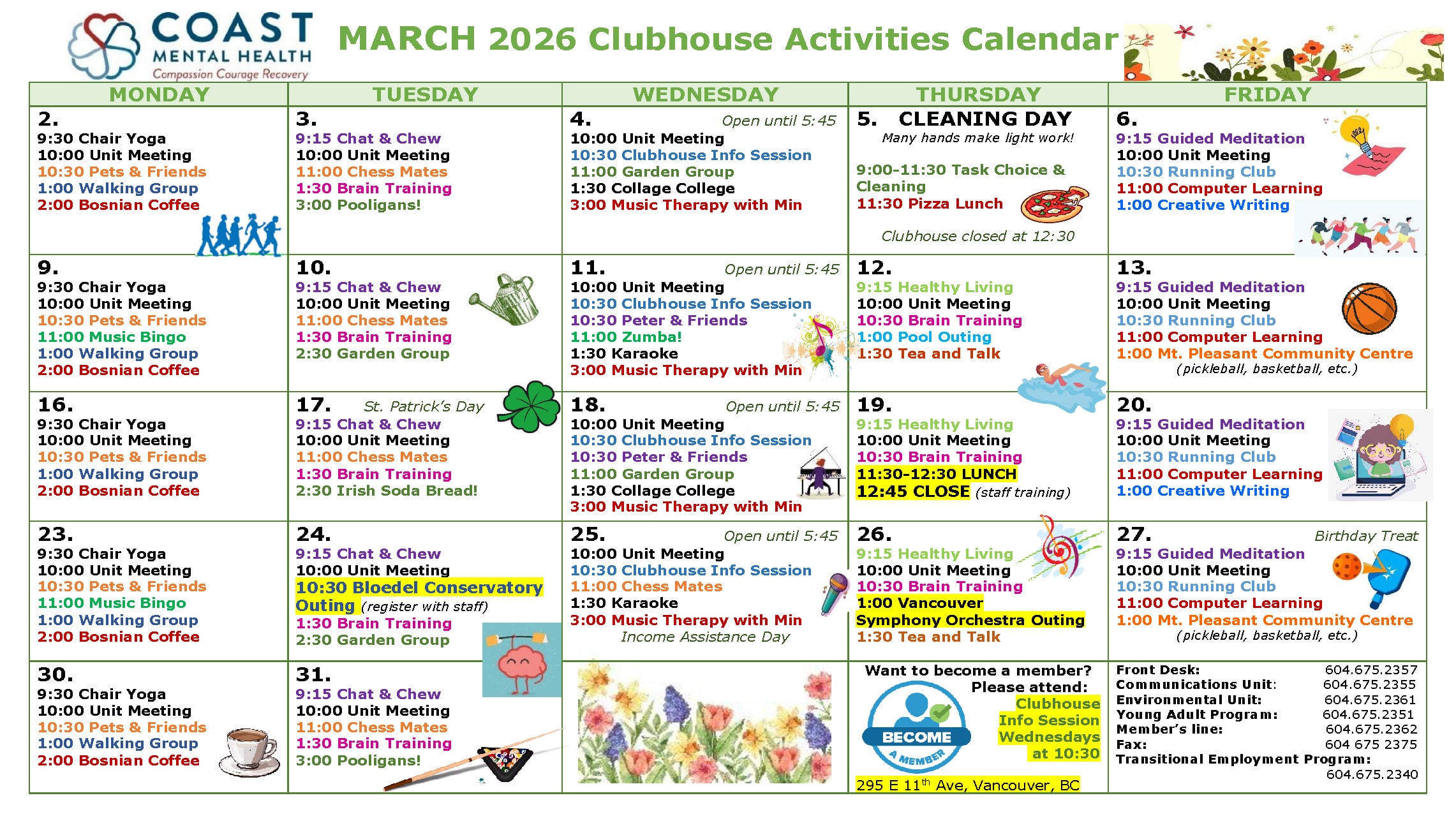 DOWNLOAD: MARCH 2026 COAST CLUBHOUSE ACTIVITIES & DETAILS