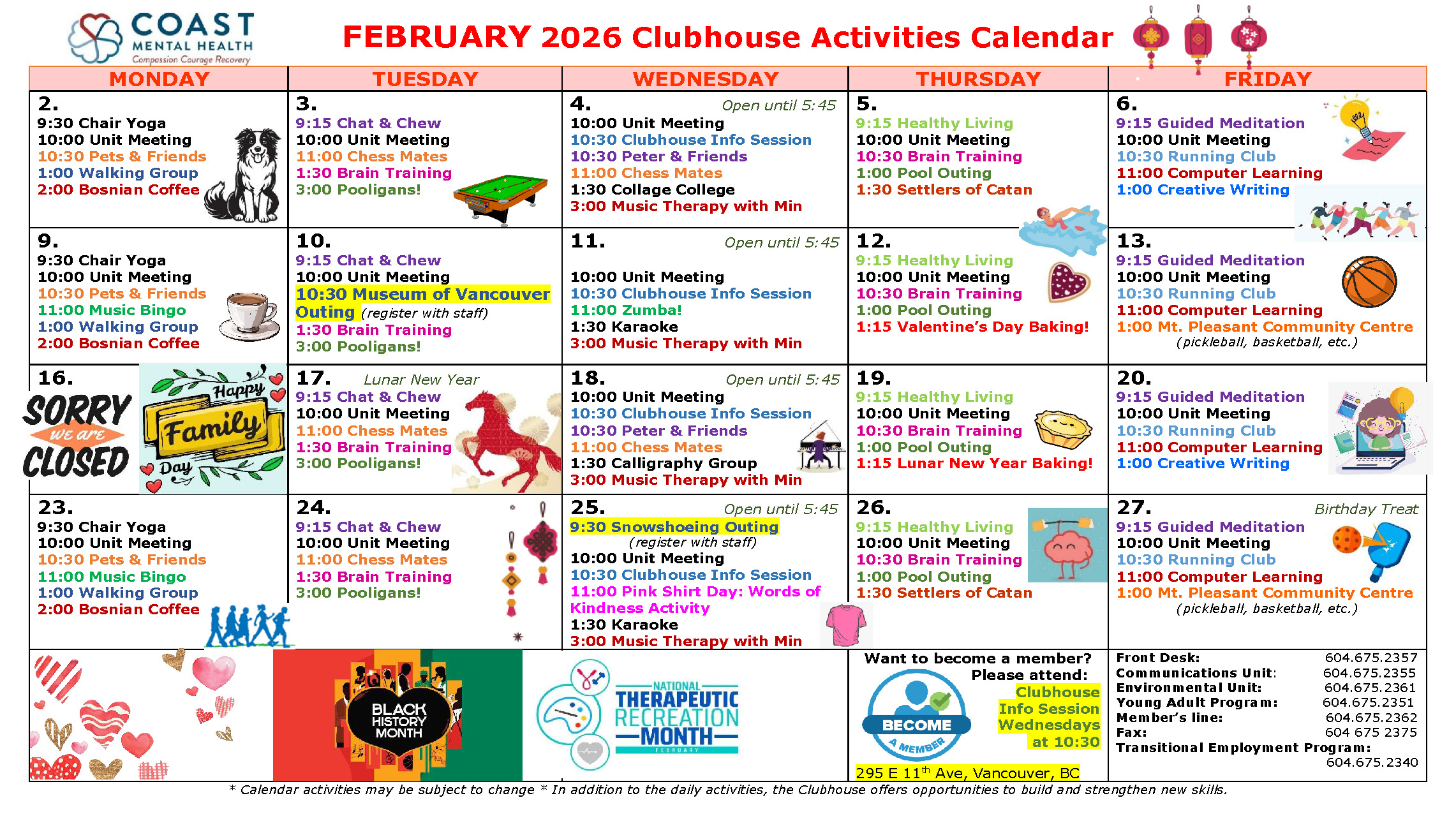 DOWNLOAD: FEBRUARY 2026 COAST CLUBHOUSE ACTIVITIES & DETAILS